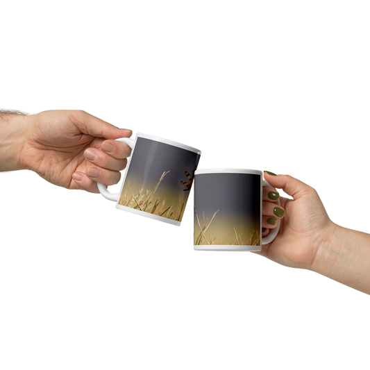 This digital wildlife animal painting print design is of a sunlit seagull....